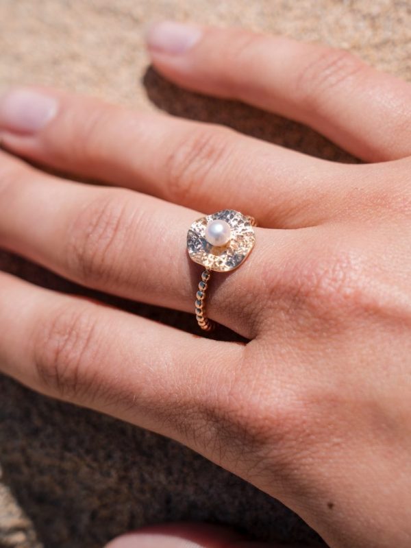 Fein und zart erinnern uns die Blüten an die Leichtigkeit des Seins. Das warme Roségold und die schimmernden Akoya-Perlen laden zum Tagträumen ein.