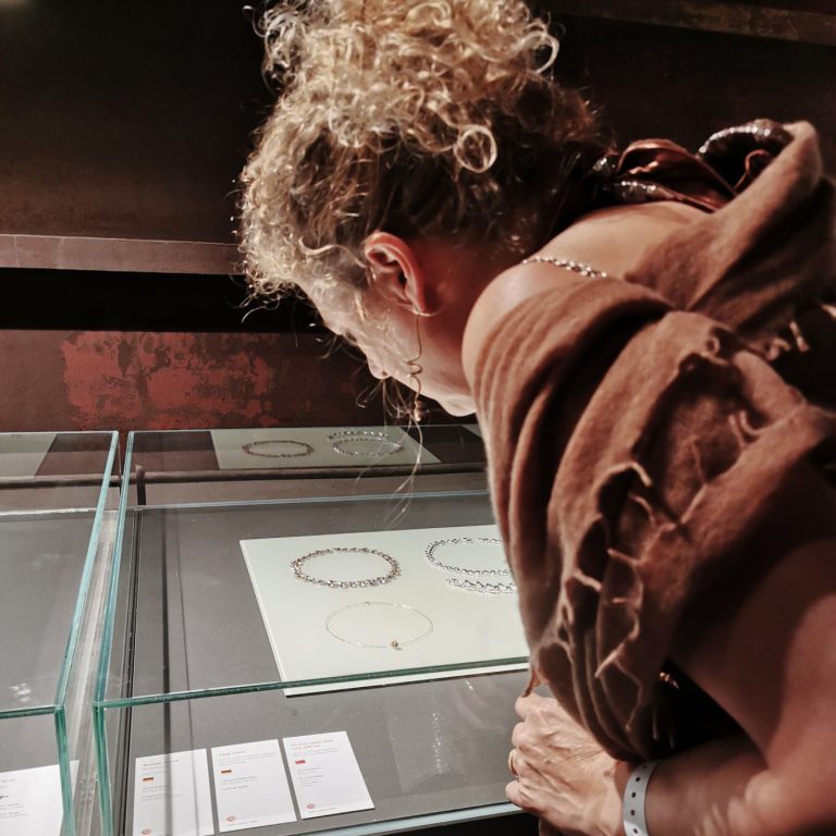 „Das Collier fasziniert durch den sanften Schimmer der verschiedenen Goldlegierungen und die sinnliche Leichtigkeit, mit dem es Bezug nimmt auf die perfekte Schönheit der Natur.“